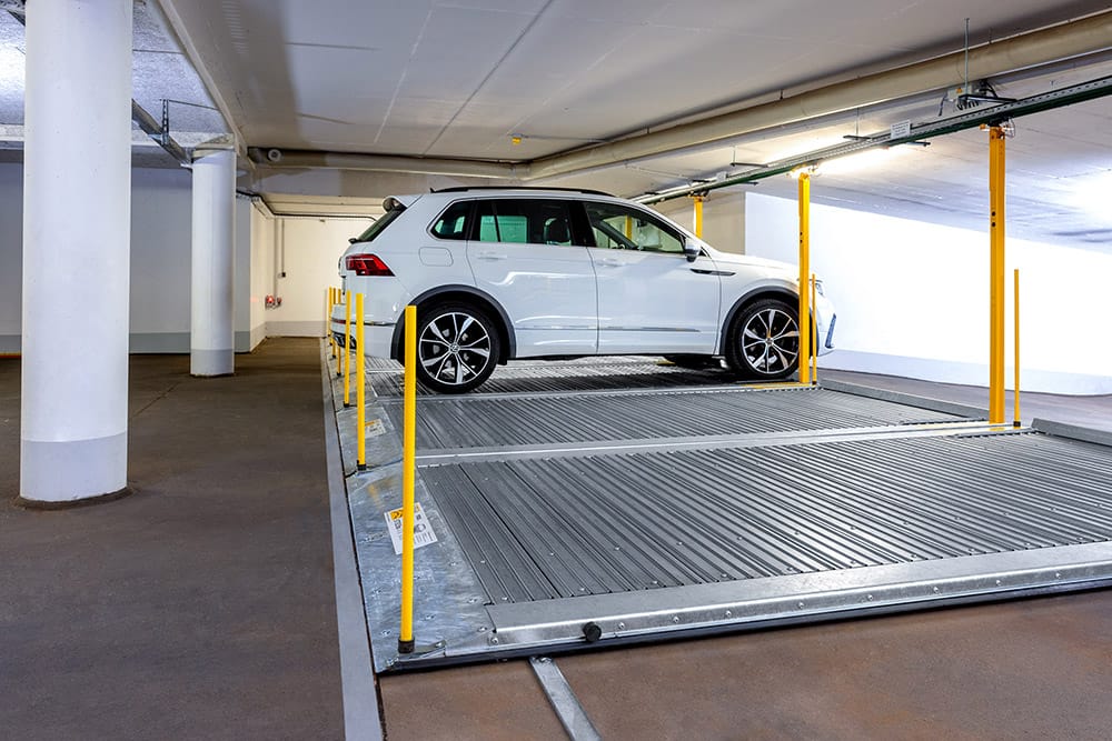 Drsne ploščadi nudijo optimalno rešitev, ko gre za maksimalen izkoristek prostora pri parkiranju. S premikanjem in zamikanjem ploščadi se lahko število parkirnih mest poveča, včasih celo podvoji.
